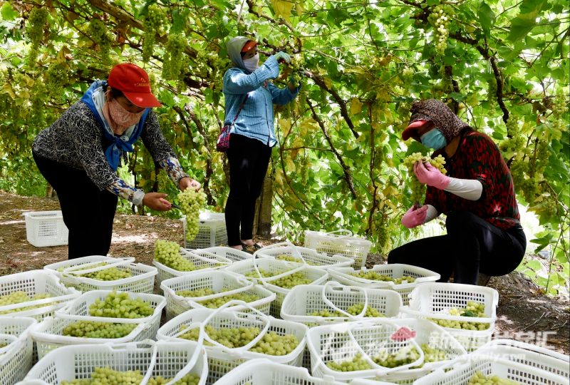 吐魯番葡萄。2022年,根據(jù)國家知識產(chǎn)權(quán)局核準(zhǔn),新疆吐魯番果業(yè)有限公司獲批使用“吐魯番葡萄干”“吐魯番葡萄”地理標(biāo)志專用標(biāo)志。來源:吐魯番融媒體中心